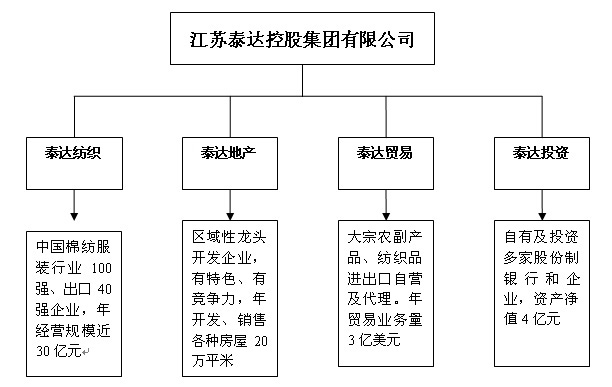 江蘇泰達(dá)控股集團(tuán)有限公司是集紡織、房地產(chǎn)、進(jìn)出口貿(mào)易、股權(quán)投資等多個行業(yè)為一體的私營綜合企業(yè)集團(tuán)。多年來,公司堅(jiān)持“以人為本,科學(xué)管理,不斷創(chuàng)新”的經(jīng)營理念,在業(yè)內(nèi)享有較高的聲譽(yù)。