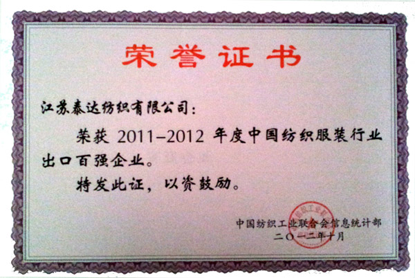 中國(guó)紡織出口行業(yè)百?gòu)?qiáng)企業(yè)